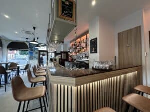 Rénovation intérieure complète d’une brasserie : Fourniture et pose d’un nouveau carrelage, Réalisation des habillages muraux : placoplâtre + peinture, Décor mural, Réalisation de tous
